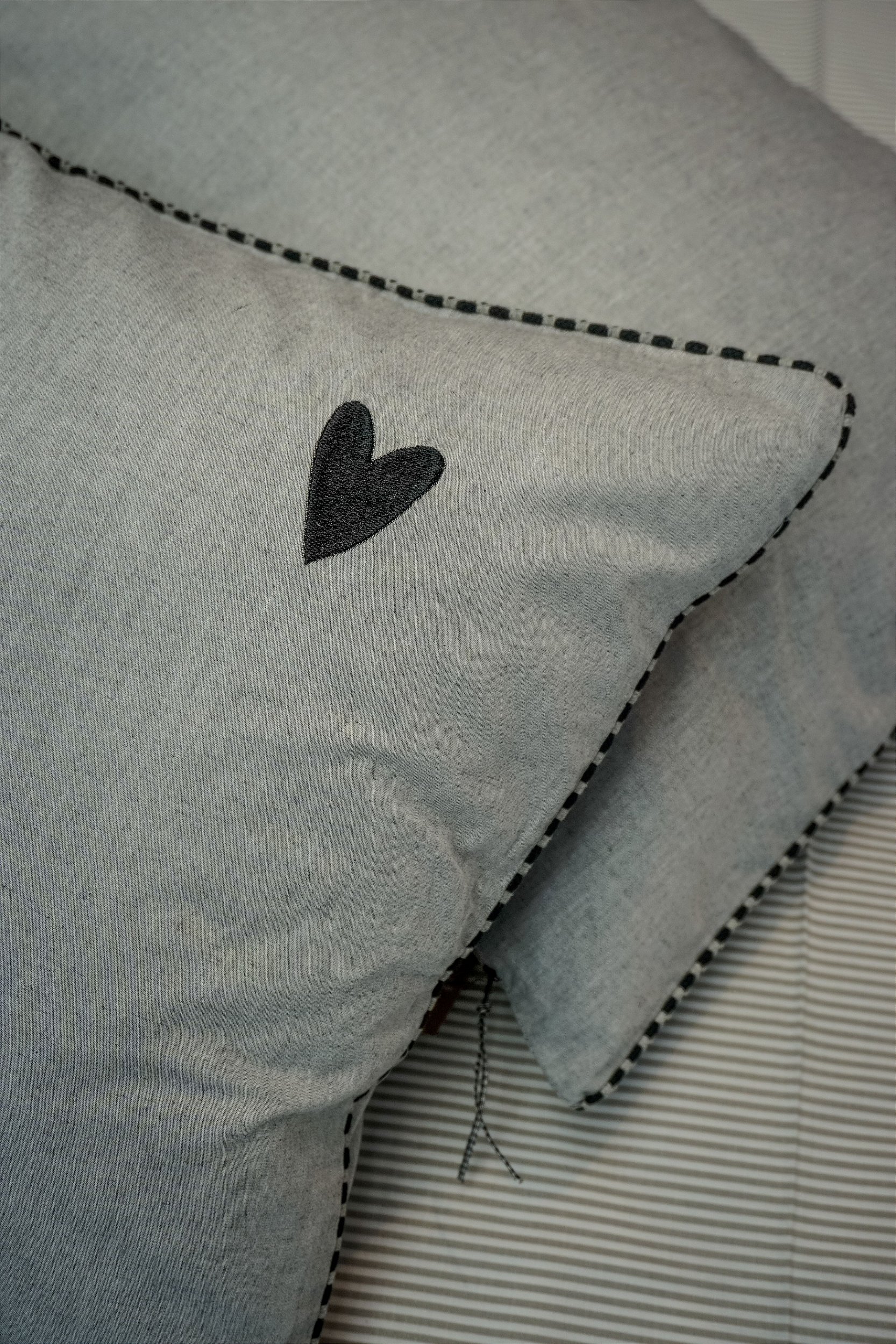 Par de Porta Travesseiro no mescla cinza com coração bordado.